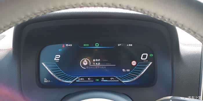 回到酒店,能耗是8.2升/百公里+4.2度/百公里。