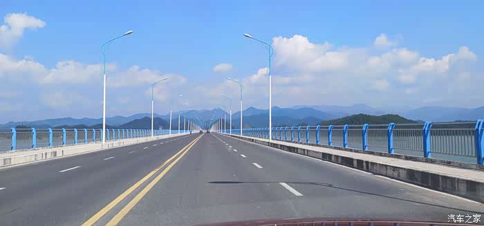 跨越千岛湖大桥,蓝天白云青山绿水。