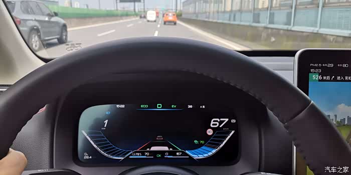 纯电模式行驶,今天来回也不到80公里,对于纯电续航100公里的唐DM来说是足够的,高架路上车道预警功能和ACC自适应巡航协同工作,既轻松又安全。尤其天热开车容易犯困,而这两项功能大大减少驾驶者的疲劳。