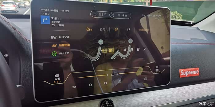 吹着空调看窗外骄阳似火的蓝天也有种满足感,唐DM前排还有座椅通风,能让背部保持舒爽。