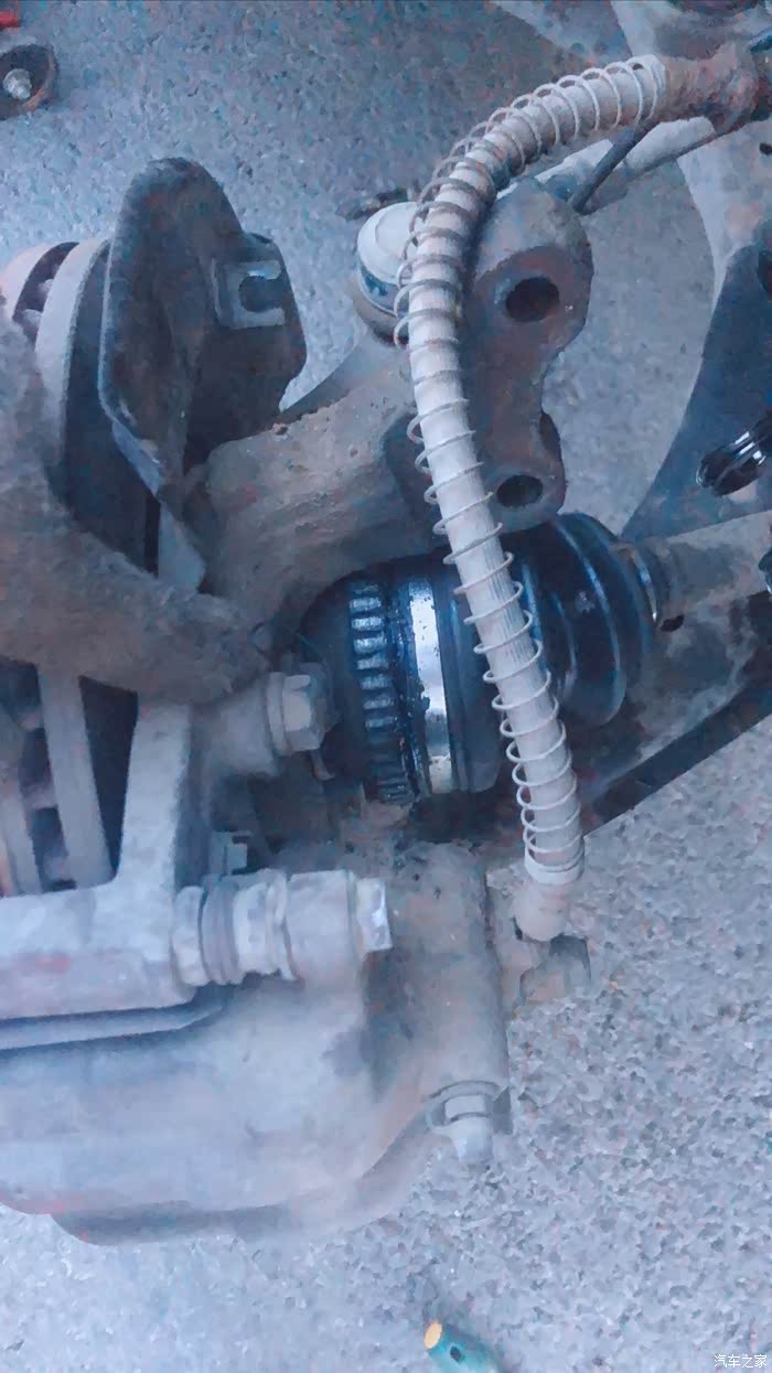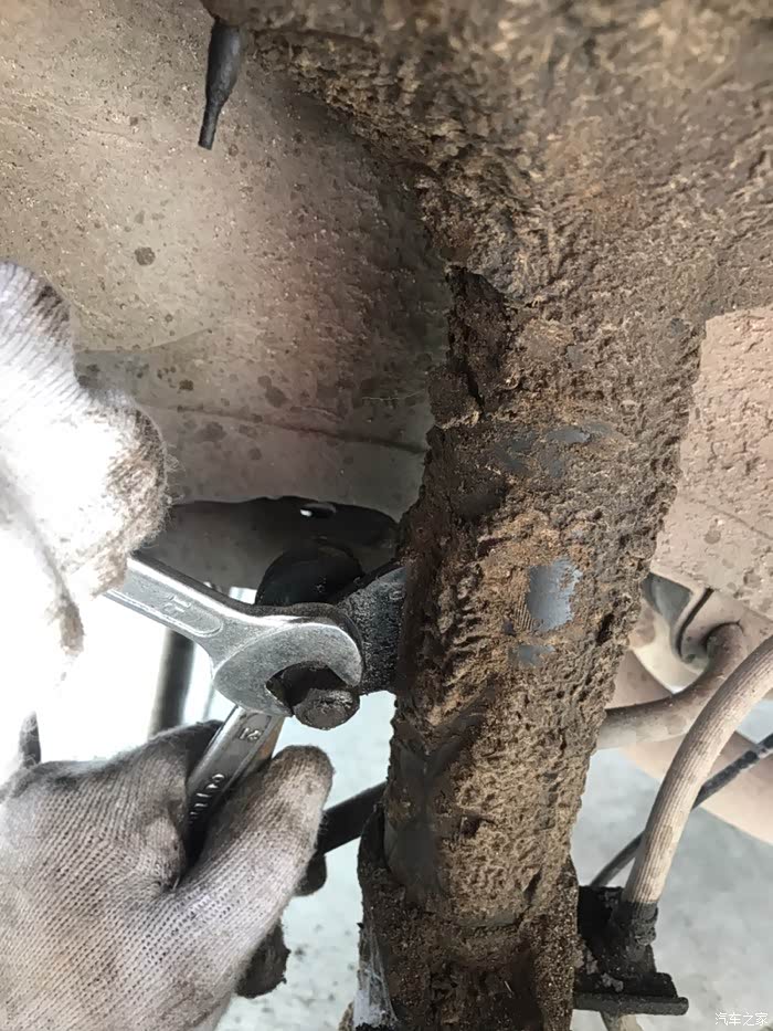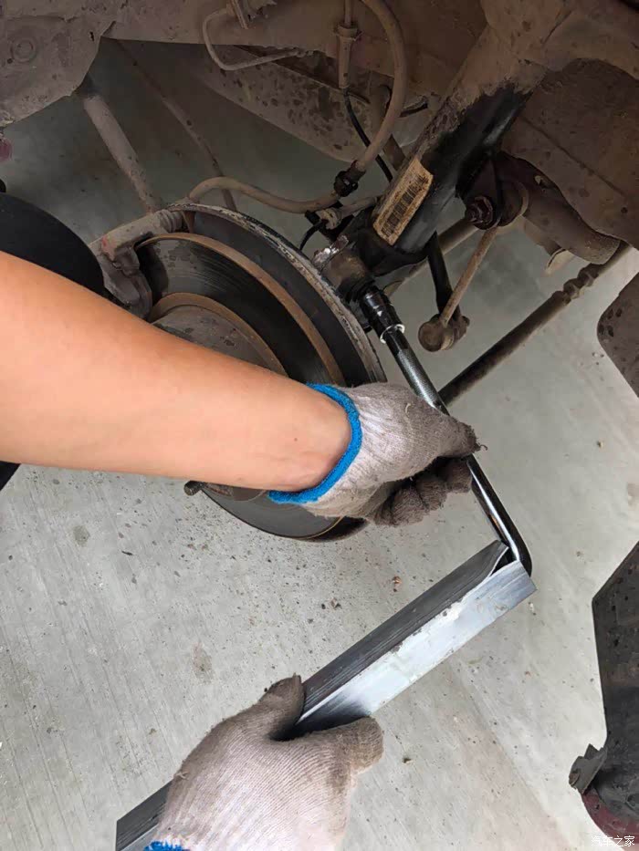 这个螺母拆的时候确实非常紧,由于没有套筒加长杆,T型套筒杆只能这样用,把方矩管都干裂了