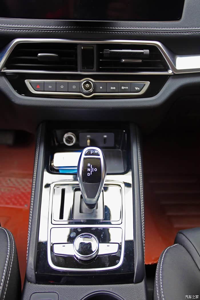 变档杆还有双擎切换转钮,金属光泽之下是比亚迪的满满科技感。