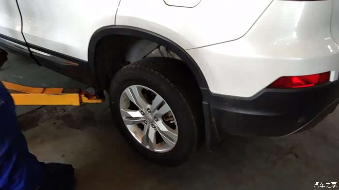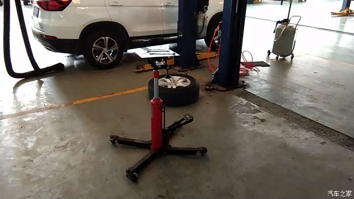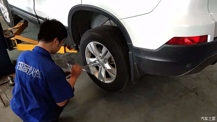 师傅把车子微微撑高,先卸下轮胎