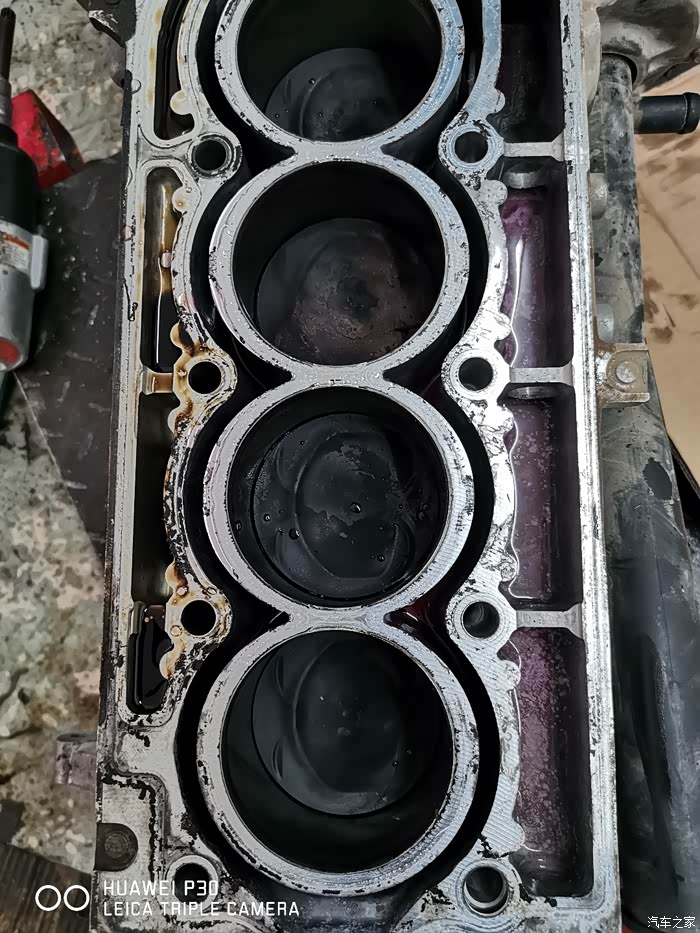 缸压不足,第三个缸,燃烧室颜色明显与其他的缸不一样