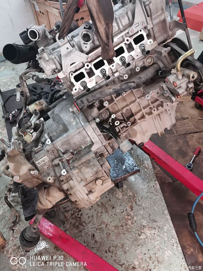 发动机附属配件拆卸完毕。准备拆卸变速箱
