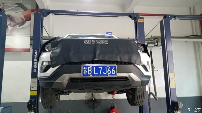 爱车上架准备更换进行更换了,大气的长安LOGO彰显了车辆的经典造型