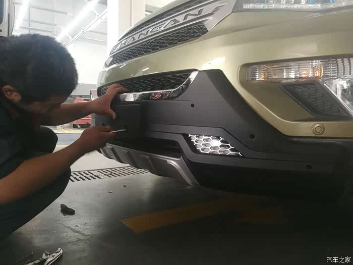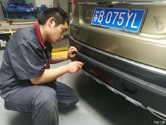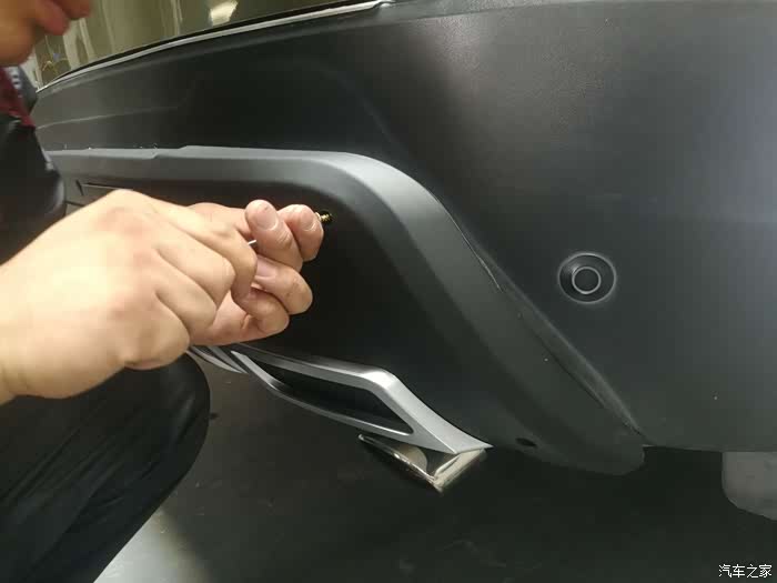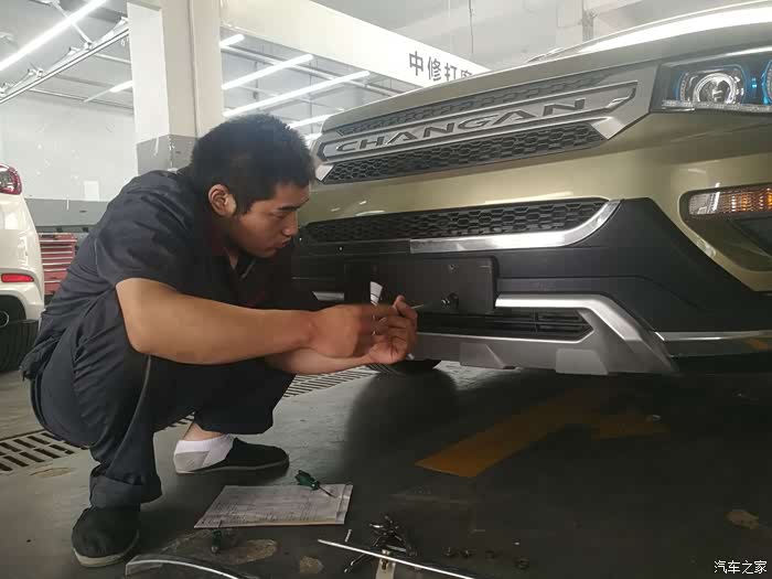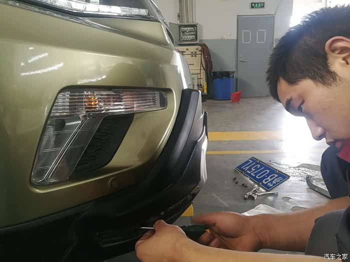 前护杠比较麻烦一些,因为首先需要将车牌照卸下来,而且还得保证牌照固定扣完好无损。