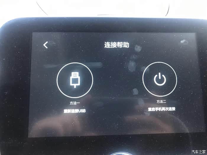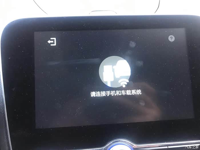 首先提示你,需要你的手机通过USB数据线,和车辆进行连接。但是连接后,依然无法使用这时点击右上角的“?”。