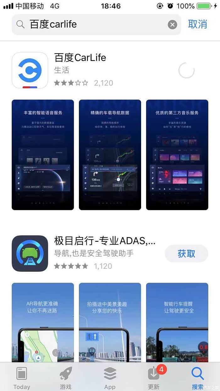 我们打开应用商店,下载APP百度CarLife。下载完成后,打开软件。