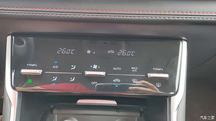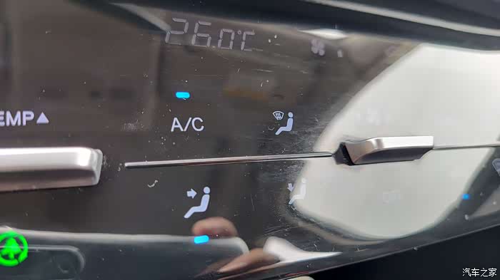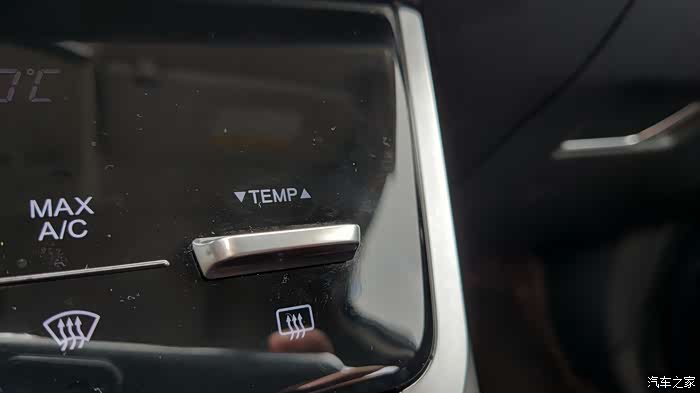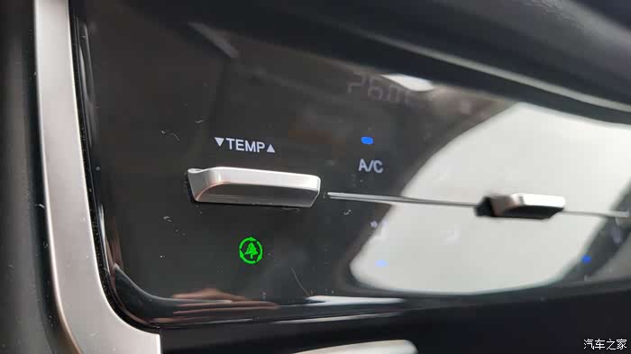 上面的实体按键是控制温度的!因为CS75PHEV带分区空调按这个是调整双边的!如果动右边那个温度,以后就是单独控制了!下面那个绿色的触摸按键是空气净化功能!