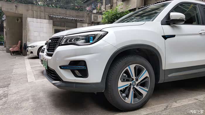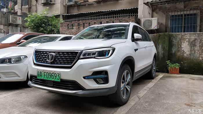 为了给大家演示功能,我特意把车停在一个停车场,方便操作。从这个角度看CS75PHEV的前脸还是不错哈。憨实具有力量感!