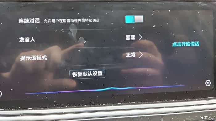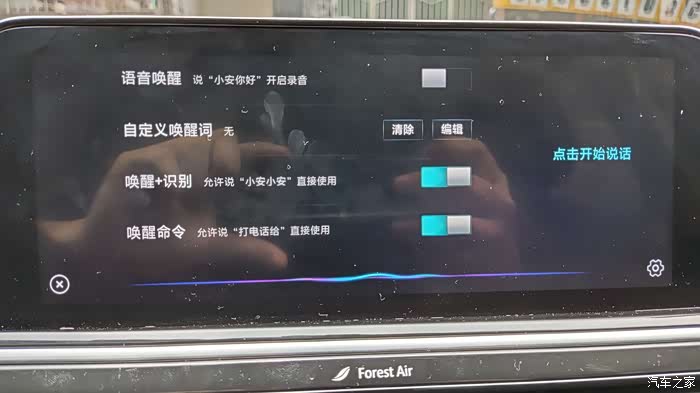 首先我们可以看到语音设置的界面,这里可以设置自己习惯的语音方式。我采用的是按方向盘物理按键的方式,这样更加直接。比语音唤醒方便一点!