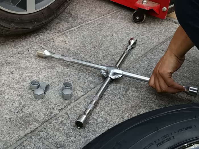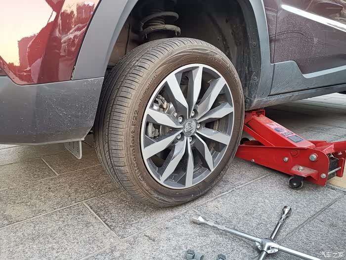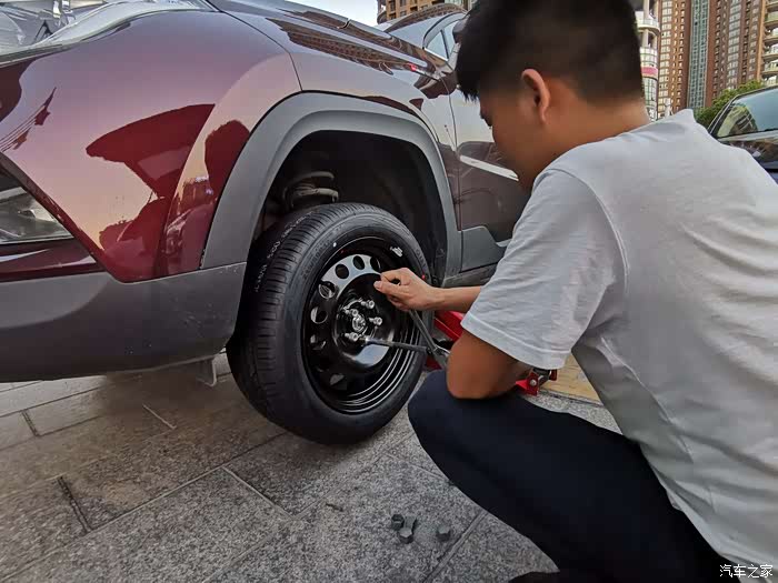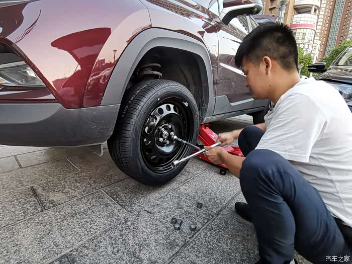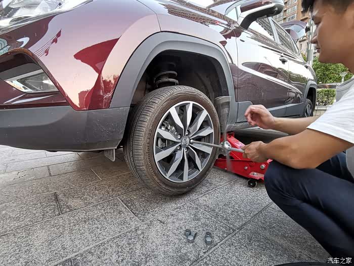 第一步把车用千斤顶压起