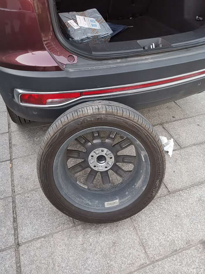 把报废的轮胎放到后备箱