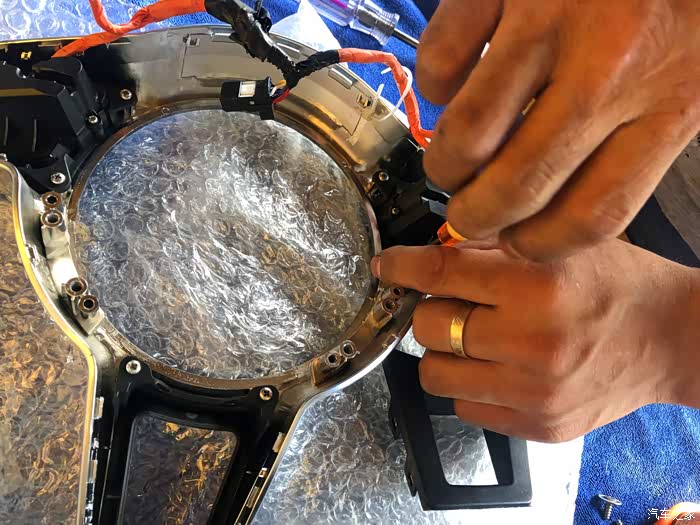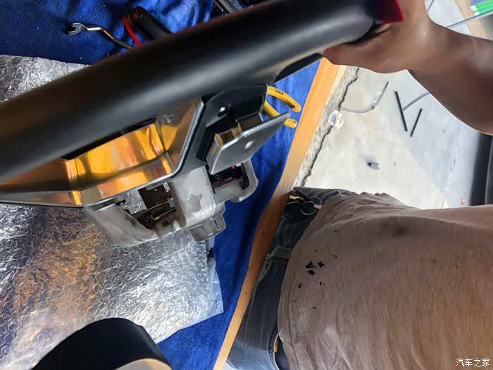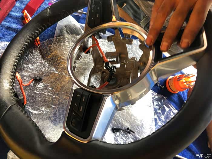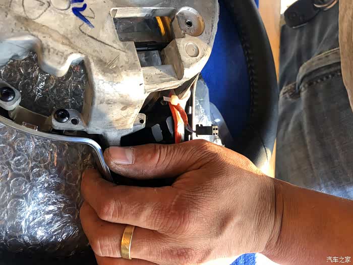 气囊后面的线束注意不要拉断了