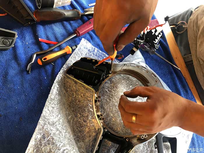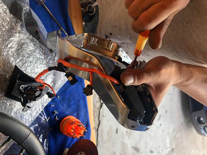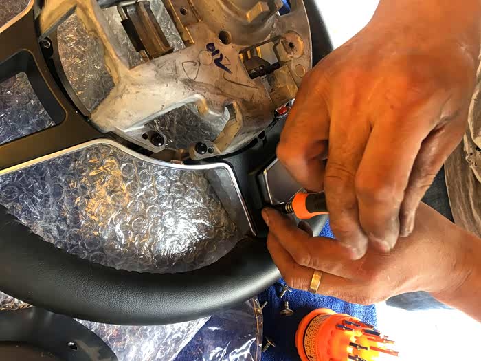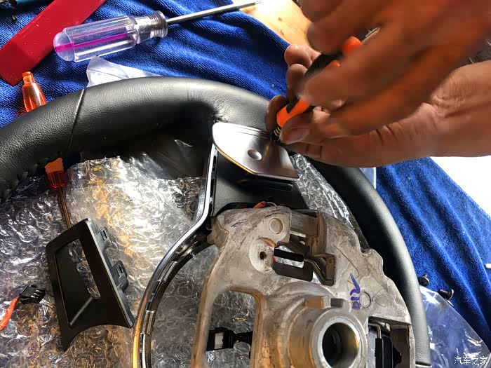开始更换按键了,先方向盘下面有三个螺丝