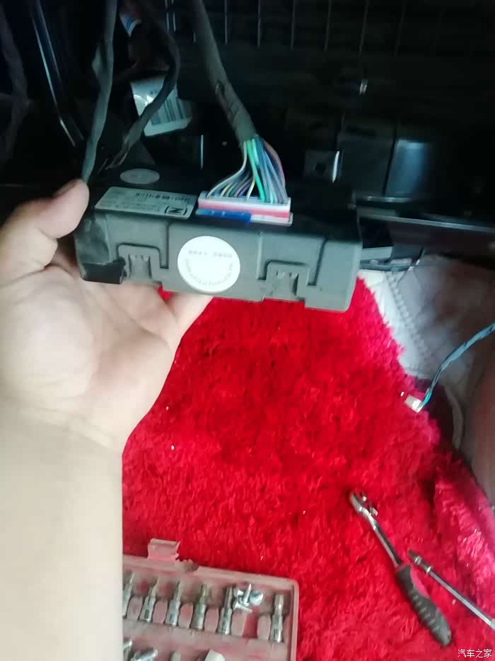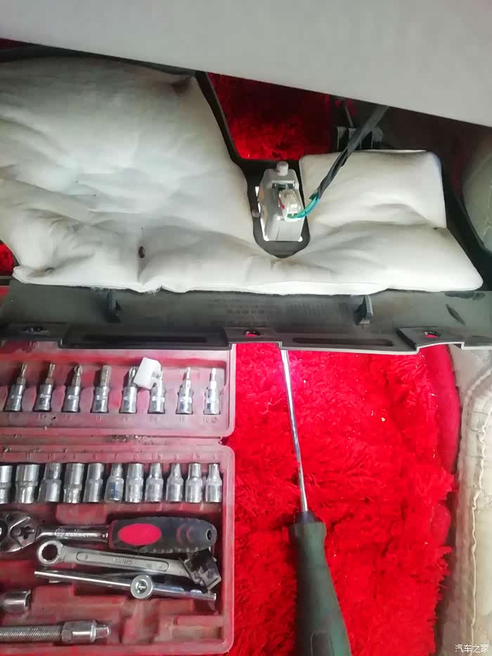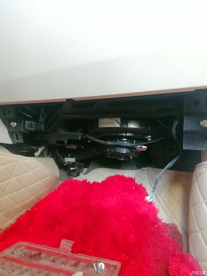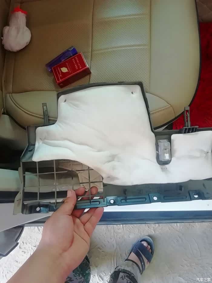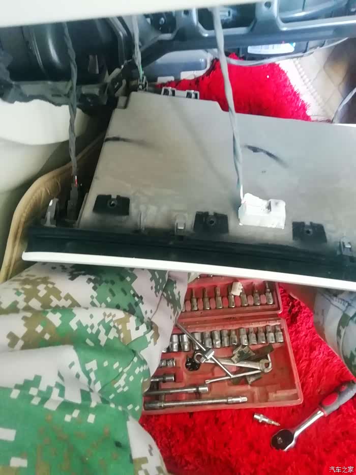 扶手箱螺丝拆了后也是卡子固定,直接向怀里方向拉就可以拆掉,注意线束不要拉断