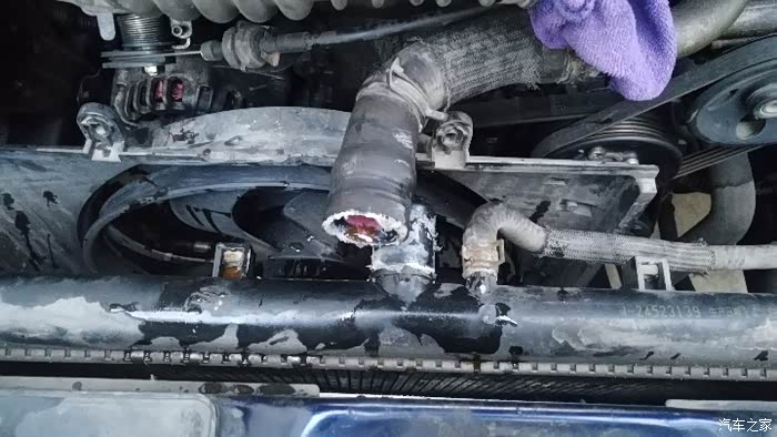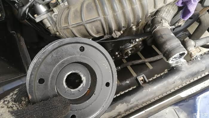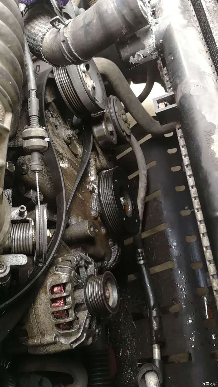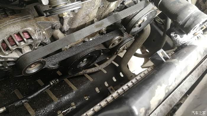 安装皮带的时候一定要小心,顺时针往发电机上套。特别要注意右手扳手,小心打滑。我就一不小心打滑,把水箱又捅破了下一次再来个换水箱过程吧