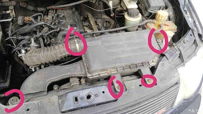然后挂5档,拉满手刹,拉到不能拉为止,否则皮带轮的时候,车会跑。我拆的时候,车都后退了半米多的样子。