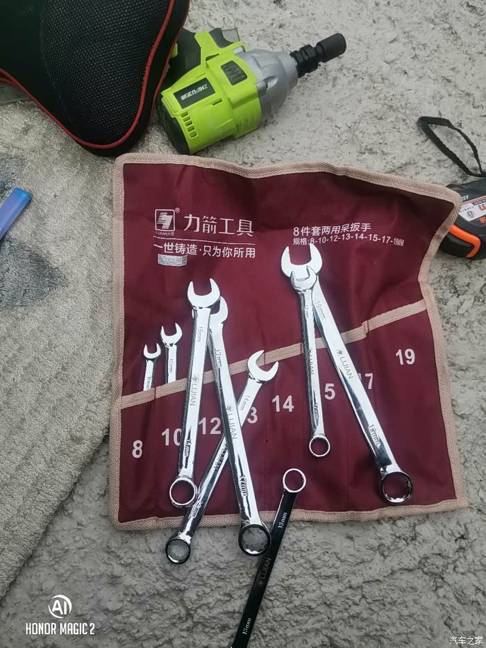 一套扳手只有12能用上,,拆方向拉杆需要18的,或者活扳手,但是需要两把,自己有把活扳手,用19的加个垫片拆下来的