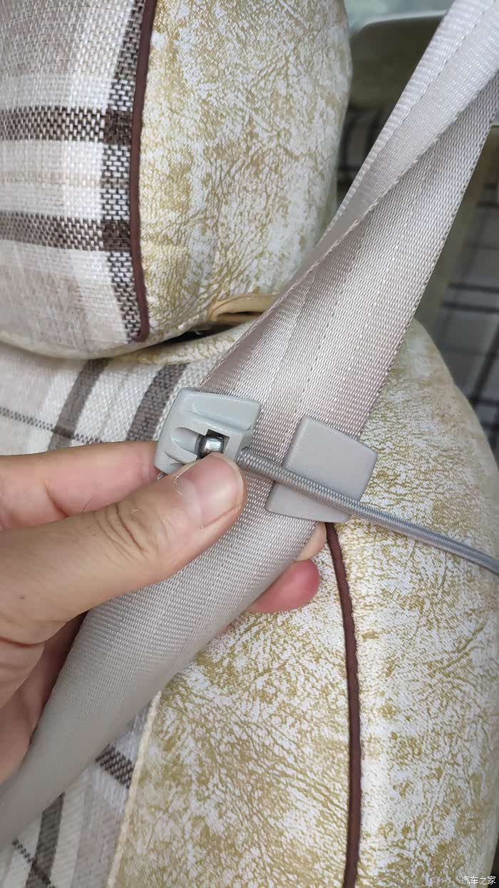 这个东西是一个简易的安全带高低调节装置。它的作用就是轻微调整安全带角度,起到防止勒脖子的作用。