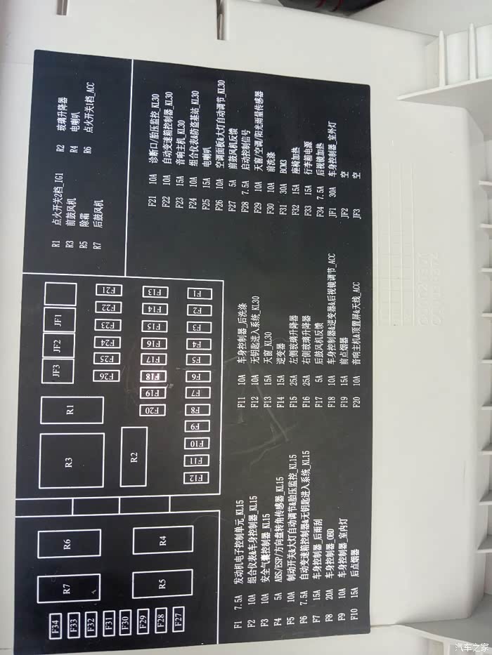 找到前点烟器保险丝F19,行车记录仪就是接在上面的