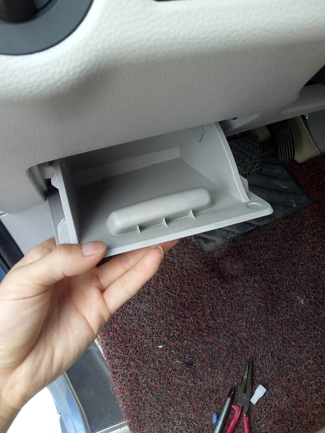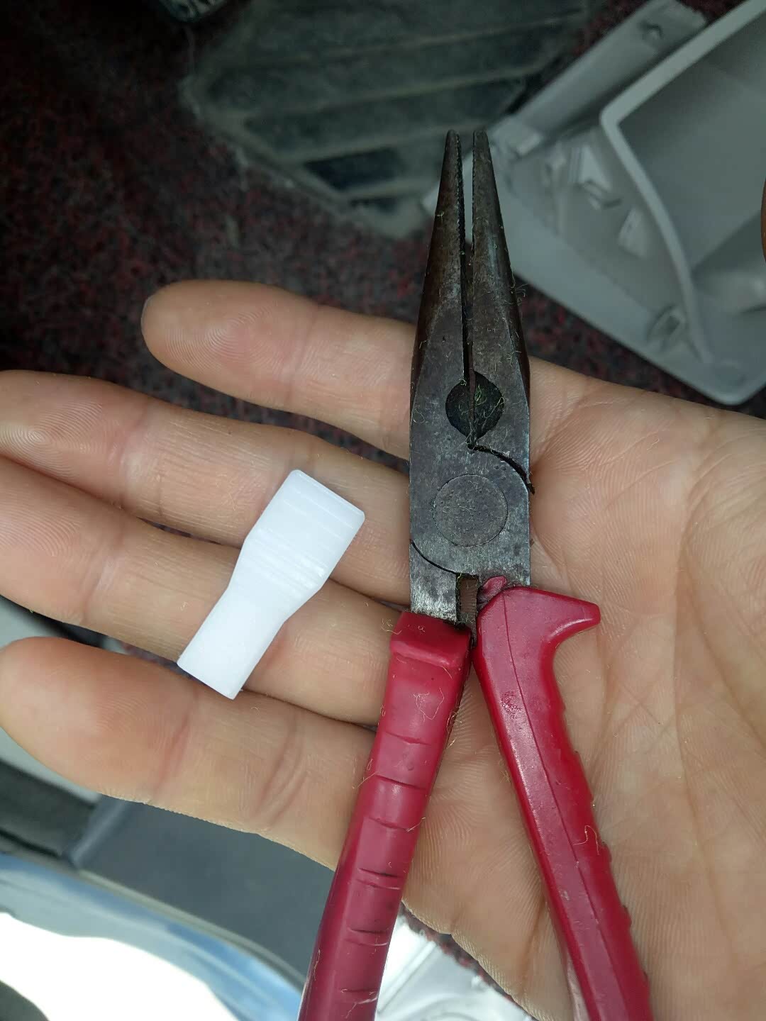 首先准备工具,用老虎钳或者这个白色的卡扣,用来拆保险丝