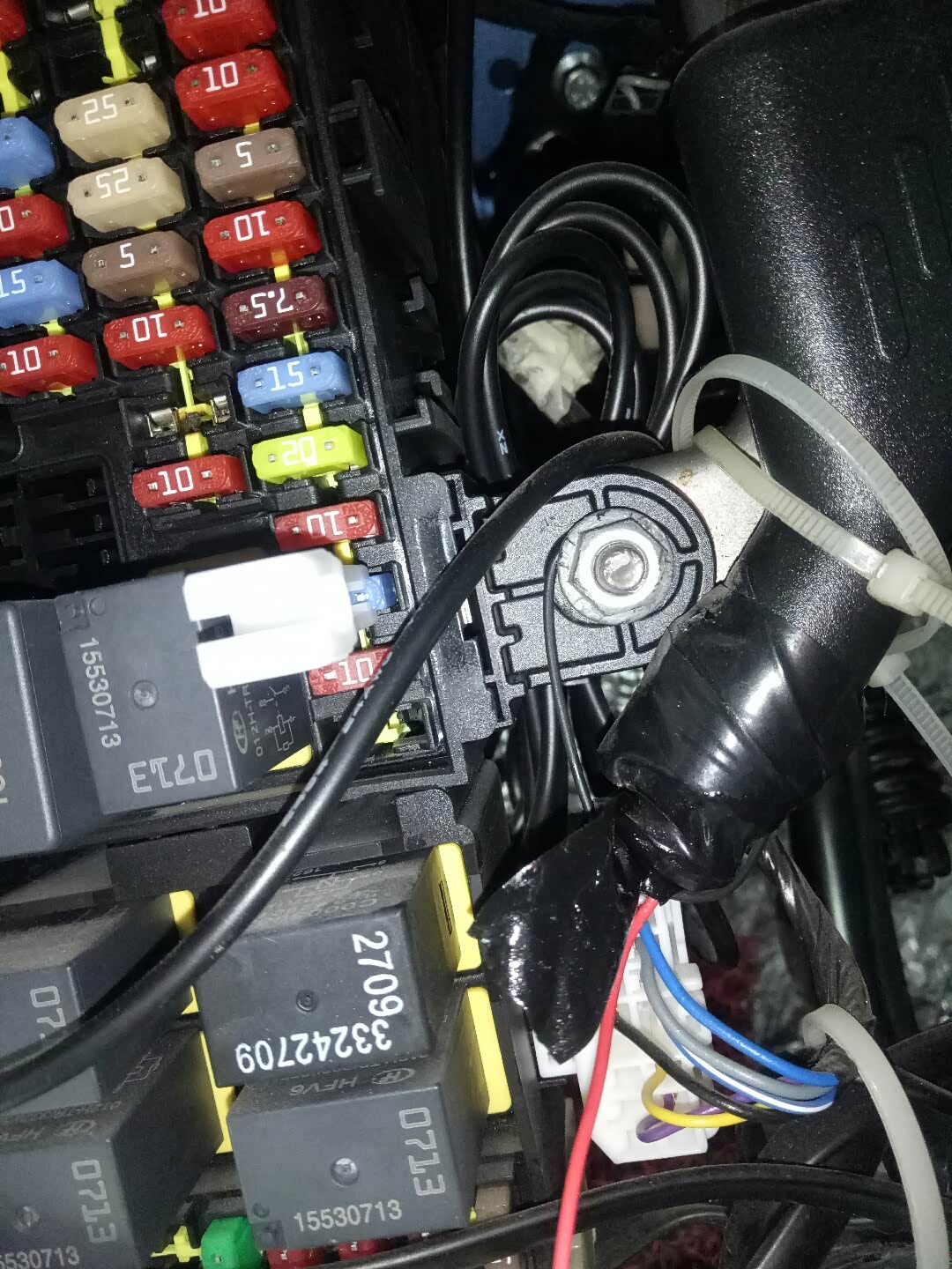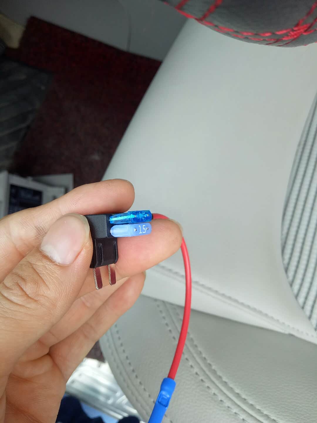拿出取电器,买了一个15的保险丝,他没有了,没办法,从车上后点烟器拆一个吧,反正那个不用