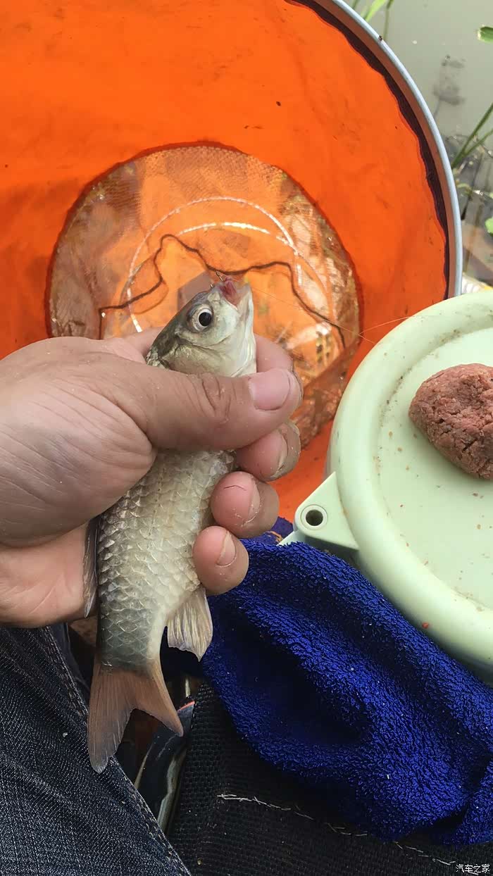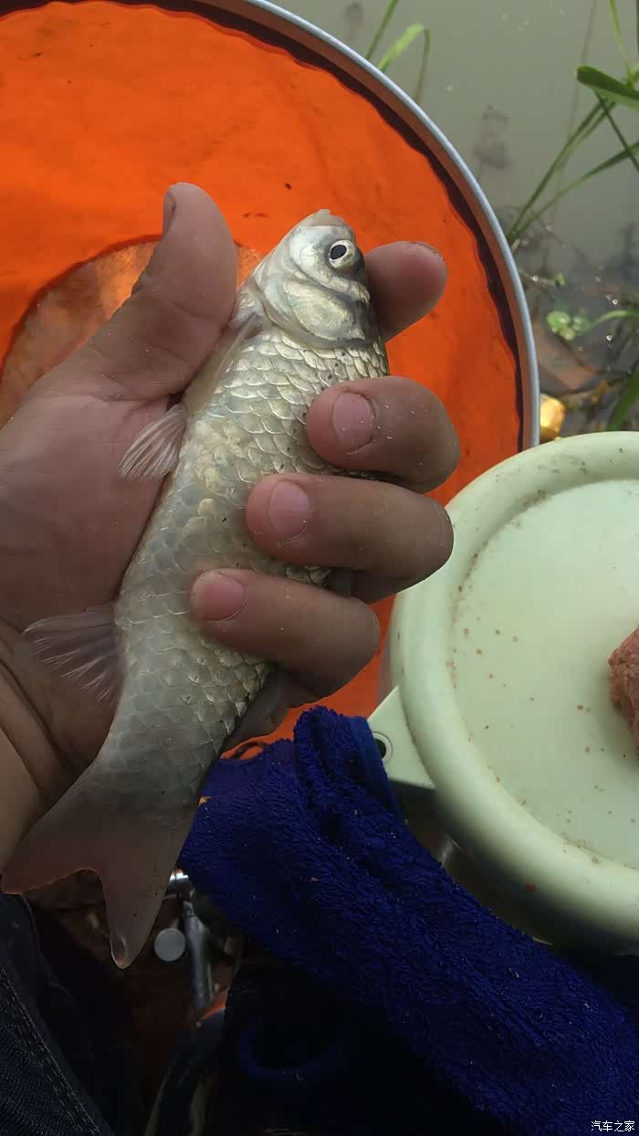 不一会儿,第一尾鲫鱼上钩了,不大,一两左右,这样的小鲫鱼给我来个一百条我也开心