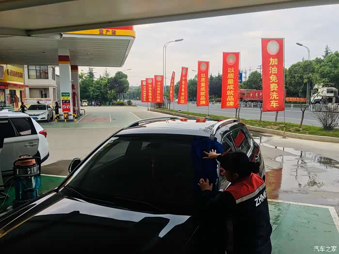 车子有点脏了,回家路上去加油站加个油,顺道洗洗车吧