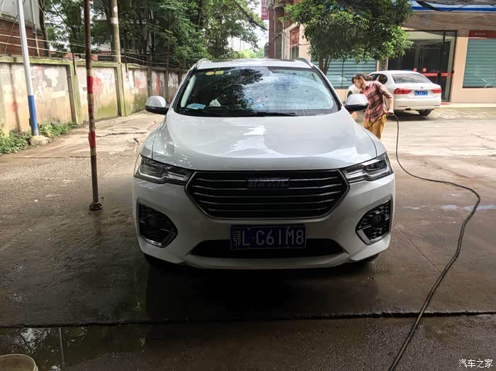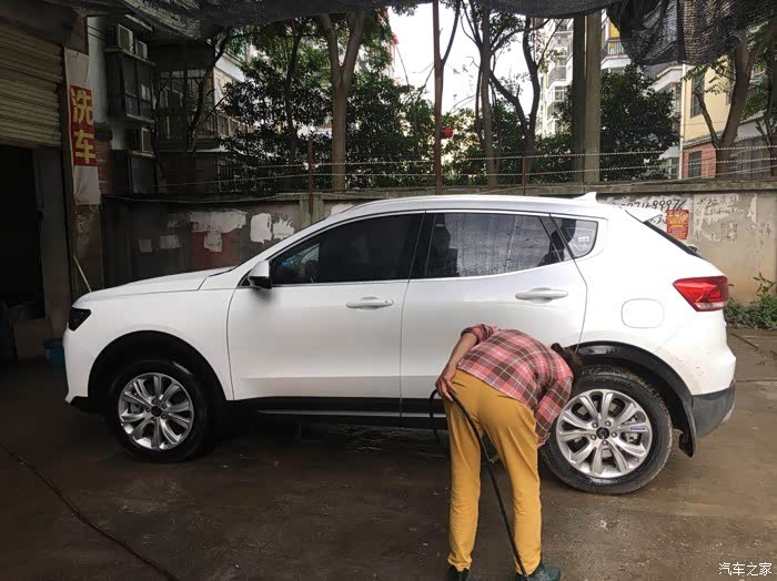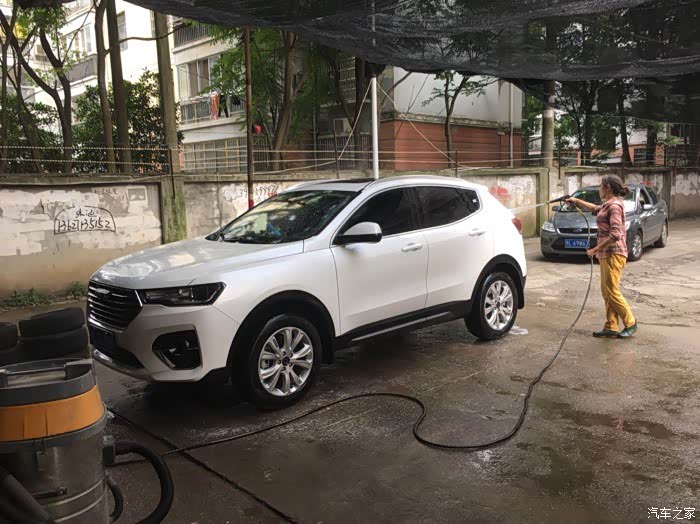 阿姨在帮忙冲洗PP,别看水柱不大,其实冲在身上也挺疼的,还好H4的身板后,车漆也后。