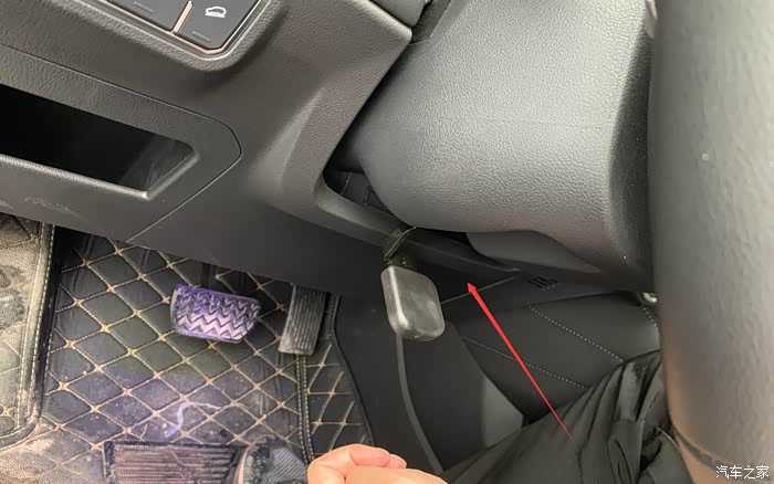方向盘下部有机关可以调节方向盘高度,对于身高比较低的人也可以舒适驾驶。