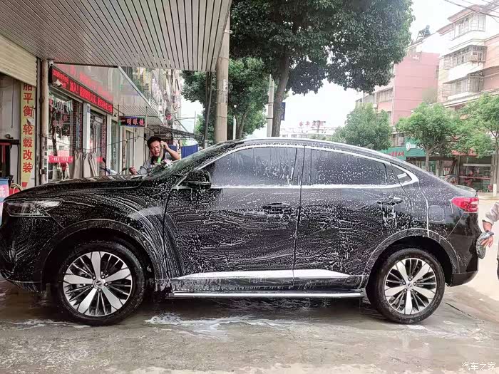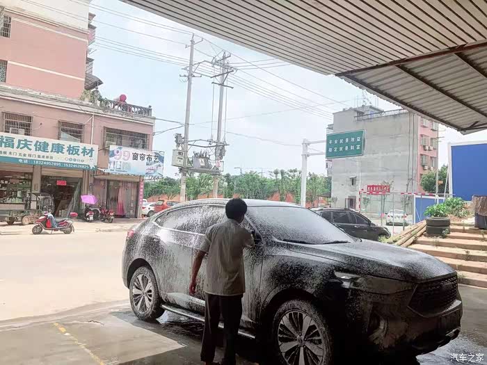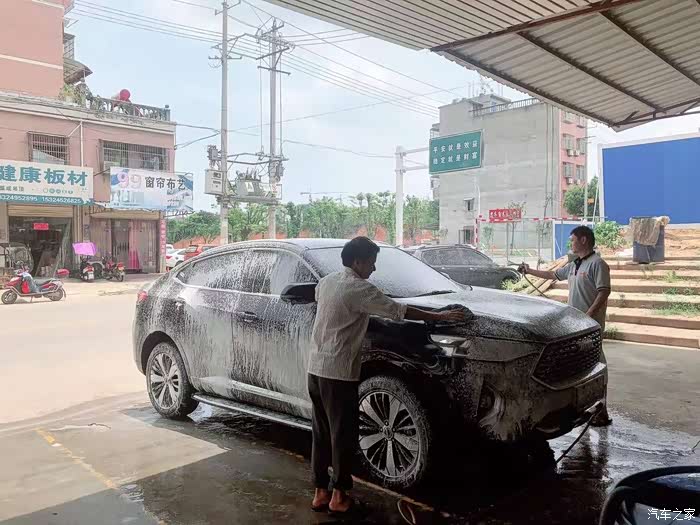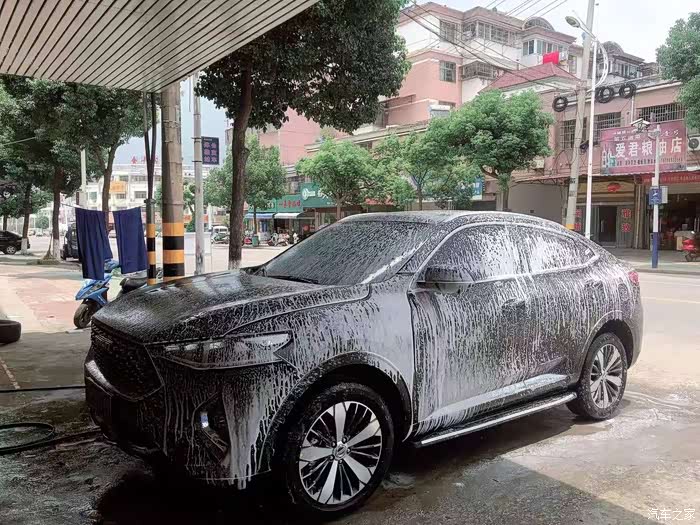 洗涤剂车身洗完,开始用水枪喷洗。是不是瞬间感觉眼前一亮?