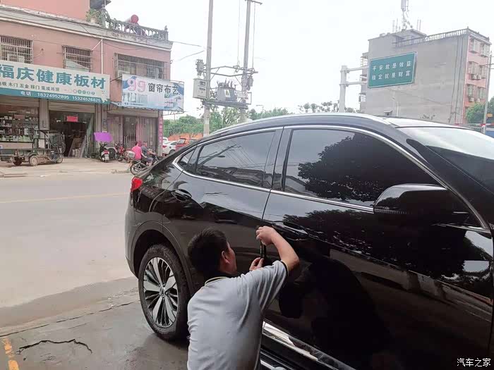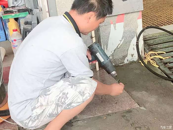 非常耐心的洗车工主动帮我贴防撞车条,还使用烘烤枪给防撞车条,帮助它更好的粘在车身上。