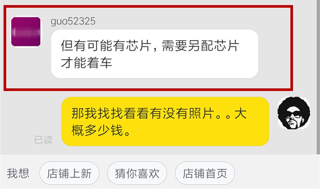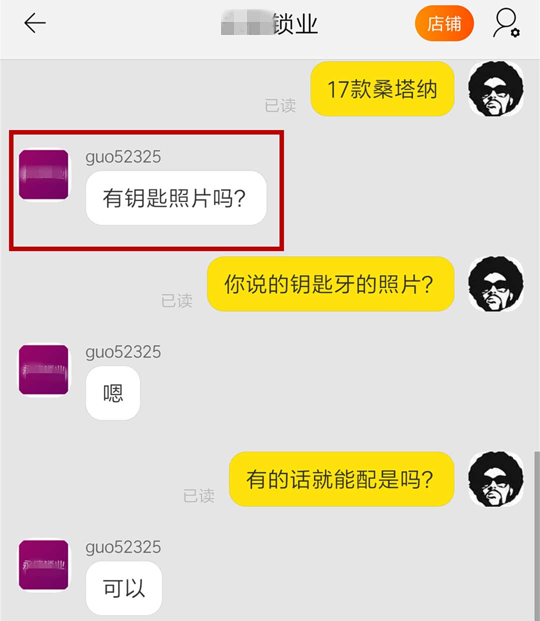 而对于网传只需要一张图片即可复制钥匙也是真实的。和店家沟通,其表示只要上传一张清晰的钥匙齿牙图片,即可复制出一副一摸一样的钥匙。并且整个过程并没有提及行驶证、驾驶证、身份证等有效证明的提供。