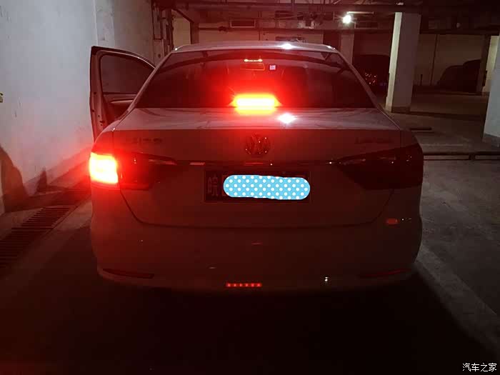 车库灯光暗淡,刹车灯很亮,看,右后刹车灯又不亮了。问题就出在这,不是偶发报警,灯泡确实有问题了。