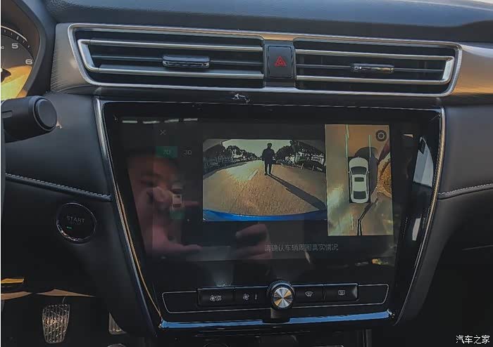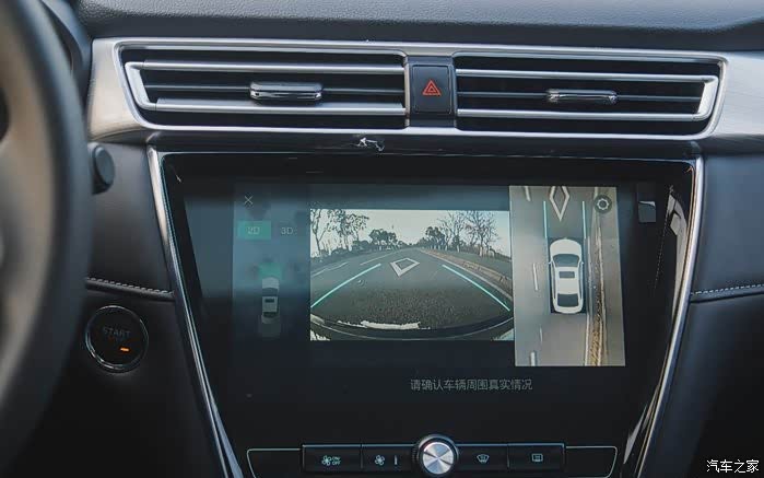 在不确定路况的情况的下,可以使用中控的360环视功能,打开全景影像,以便观察车身周围状况
