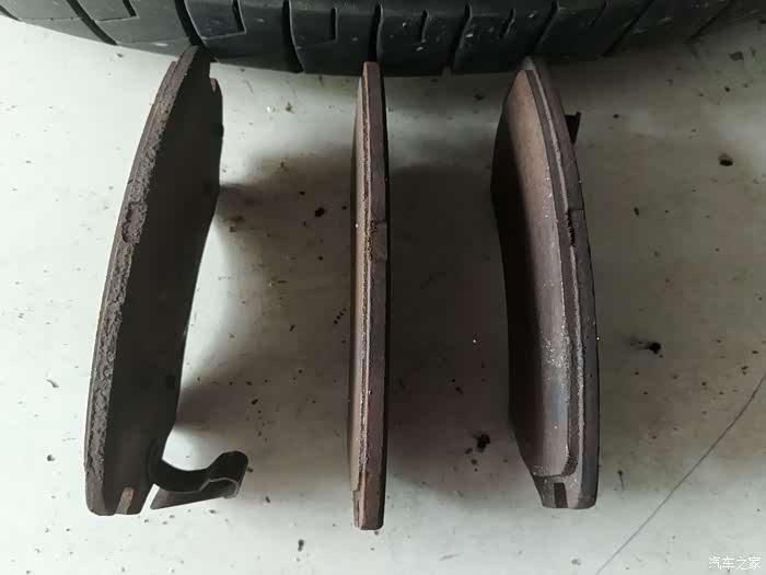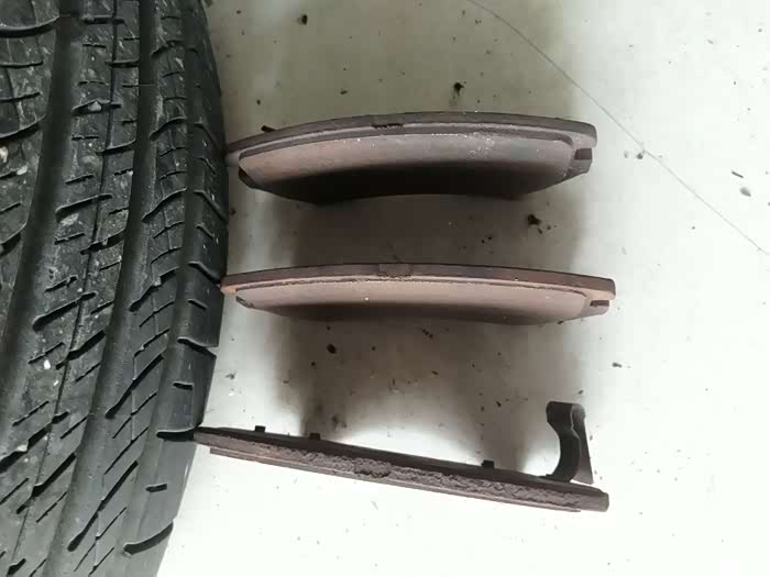 换下来的刹车片。中间那个快磨没了。
