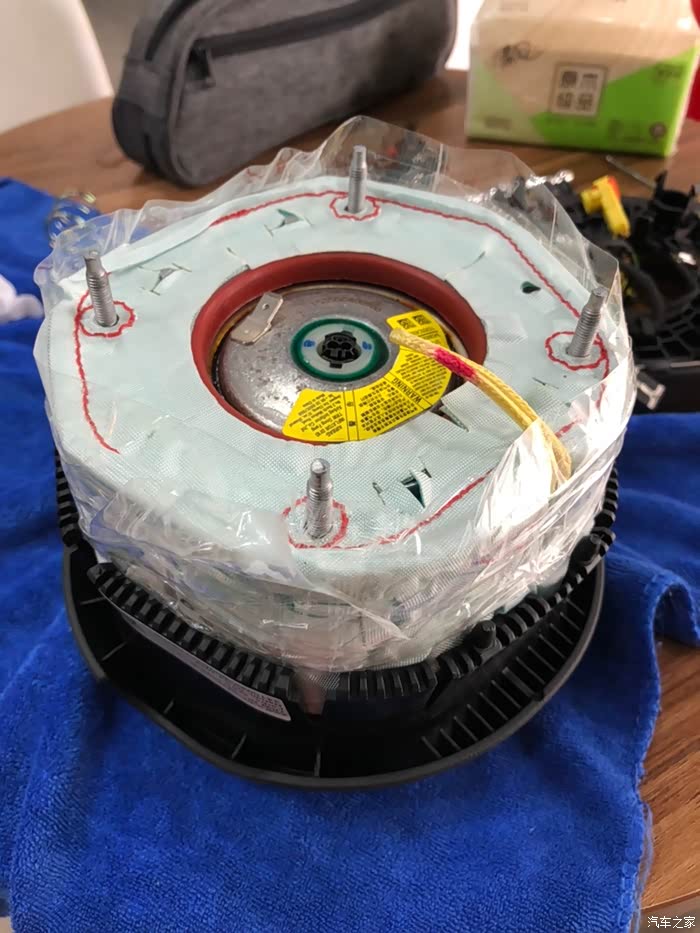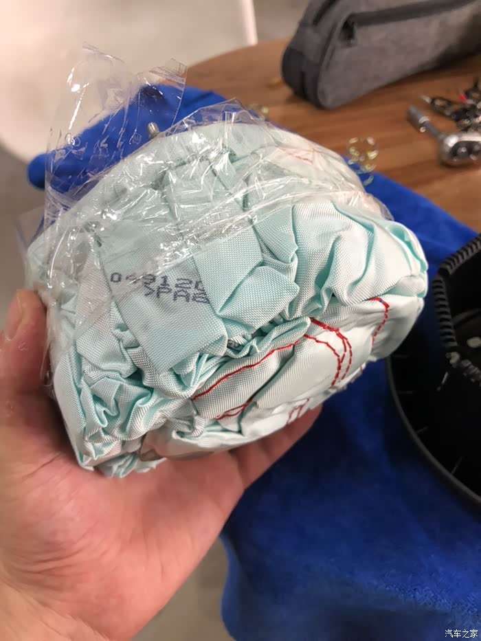 这个时候可以完全拿出气囊了,为了防止散掉,可以拉出一半并缠绕些胶带。