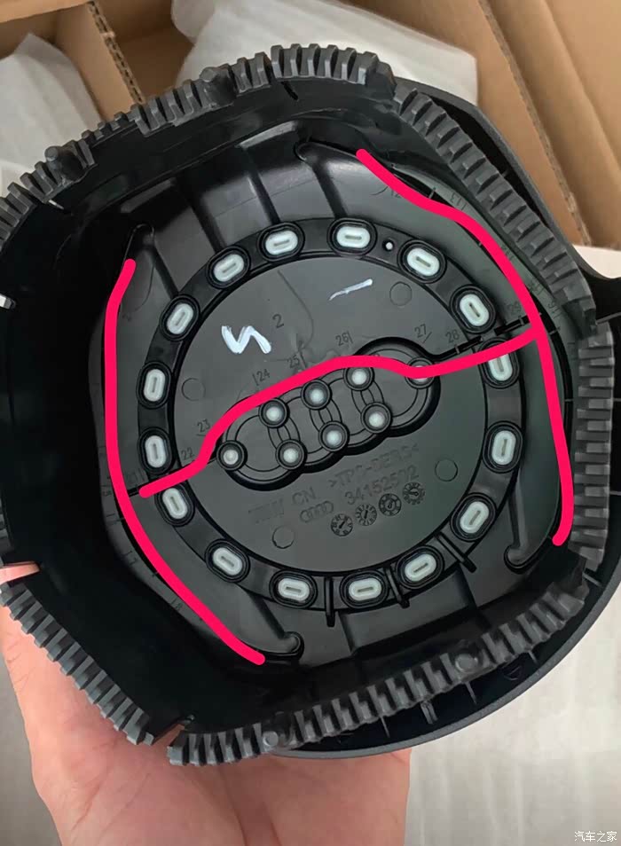 2、拆出气囊装到新盖子上时,注意相对位置,不要参考标签,标签位置每个盖子一样的。