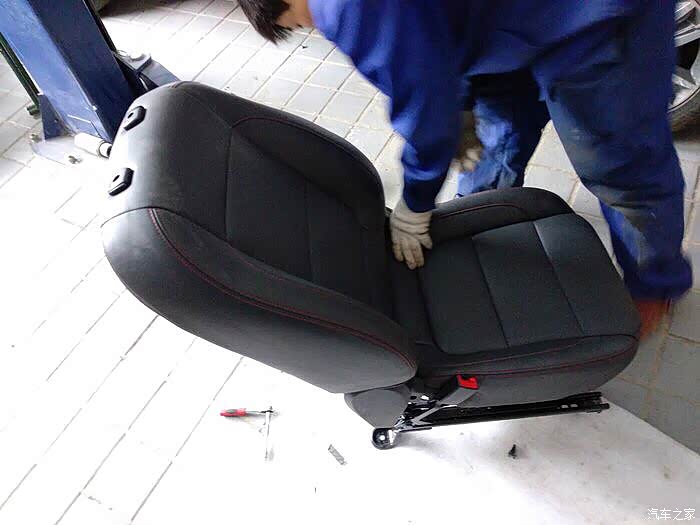 小师傅很认真的在工作着,很快的就把座椅拆下来了