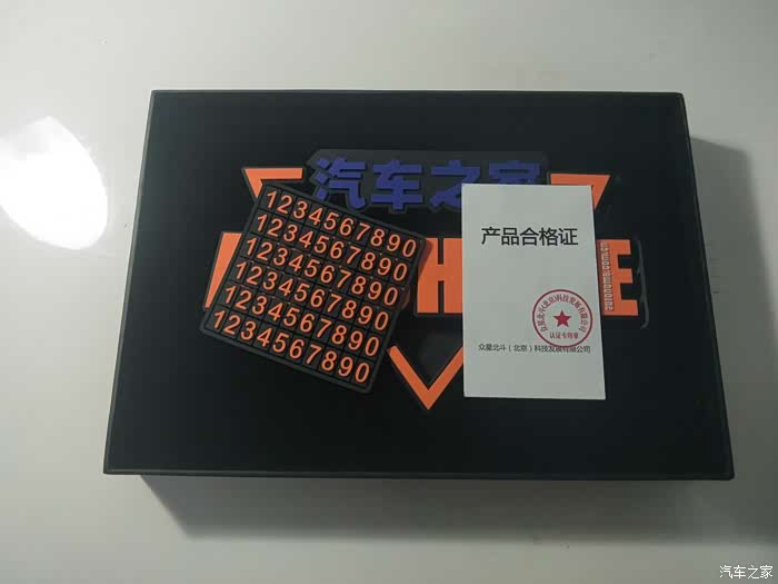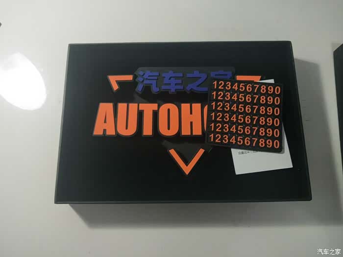 打开盒盖后,看到了内部的防滑垫,还有挪车牌的数字等。