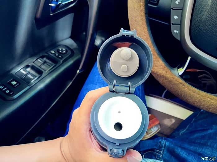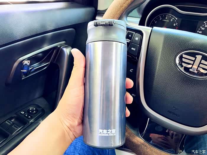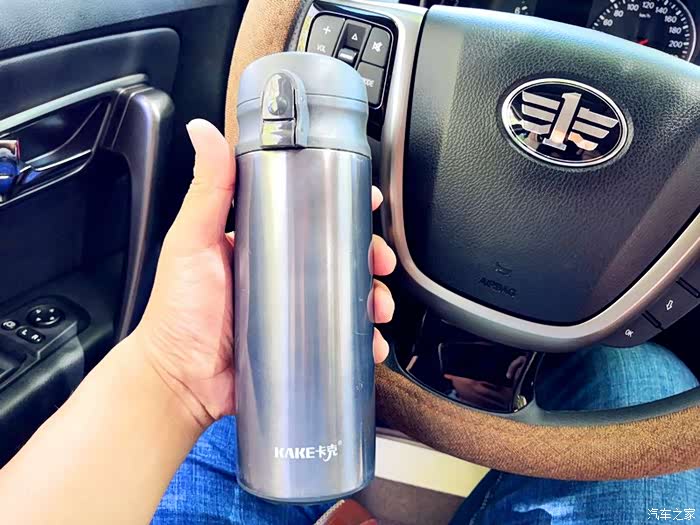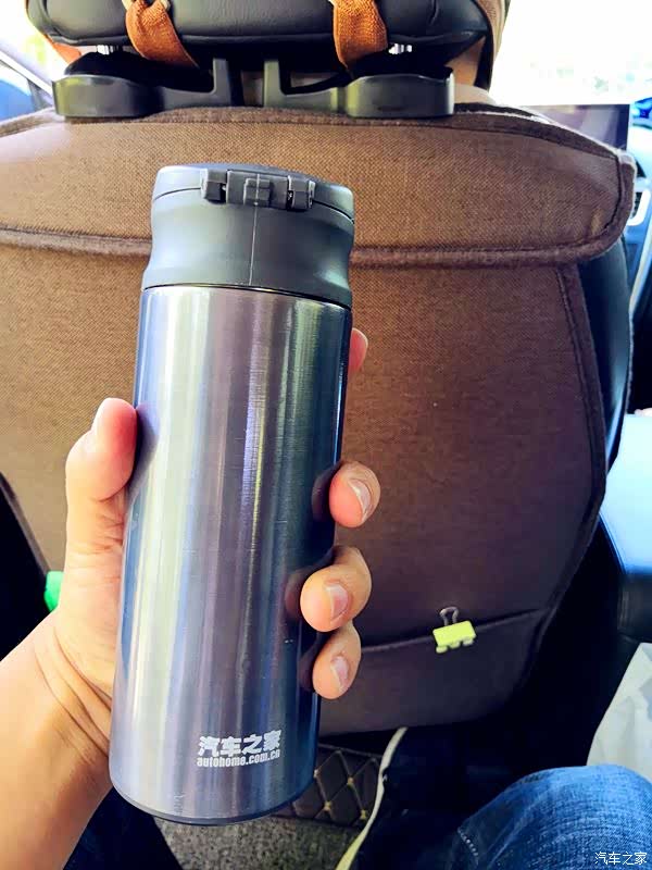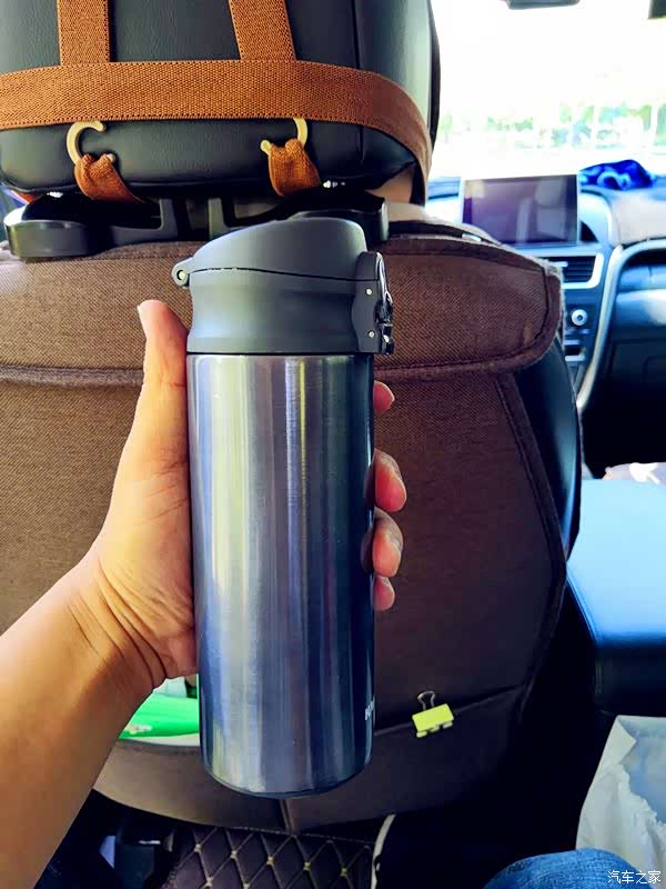 介绍一下我的这款车载保温杯,这是汽车之家的保温杯,很久以前参加一个活动得到的,至今仍在我的车上为我服役,确实很实用很好用。这款保温杯有两个口,一个大的一个小的,小的是在车上方便喝水用的,一按按钮就会弹开,一个是大的,是倒水用的,当然也可以喝水。保温效果也很好,冬天倒热水进去,到下午还是温的。推荐!