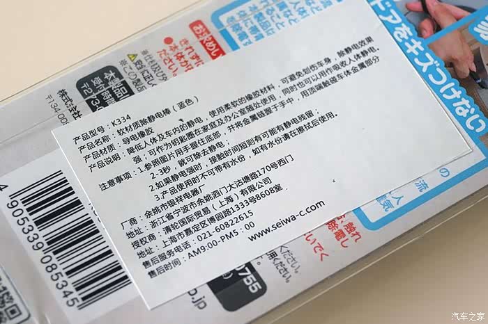 静电消除器的包装是插卡式包装,不知道为什么,在国内生产的东西,为什么要用日文标注