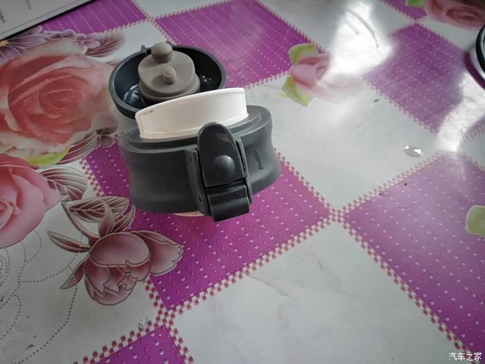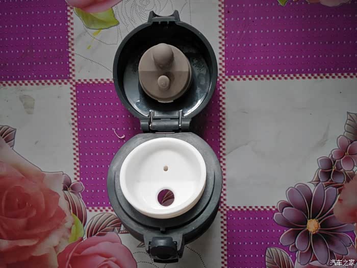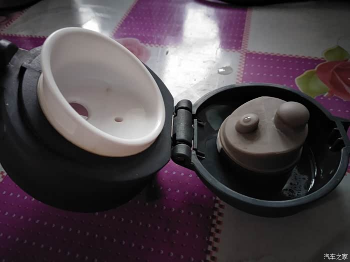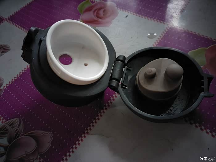 打开后的杯盖,大孔是用来喝水的,上面小孔的作用是在喝水时方便进气的