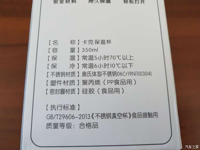 今天给大家简单评测的是汽车之家定制水杯,1、卡克保温杯是大容量,从实用性来讲是非常棒的,个人很喜欢它的大容量,实用!2、小身材在车内的杯架非常合适,不会因为过高的身材影响胳膊、手臂在扶手箱上的放置,尤其是喜欢把右手放在拍档上的习惯,一点不影响!3、用料是比较讲究的,304不锈钢和软硅胶,都是安全属性,可以给大家健康多点保障!4、保温效果特别好,装水量也不错,并且外观很精美,做工很精细,出门携带很方便,上面印有之家的LOGO,很上档次,拿出去很有面子,喜欢的车友可以入手了!