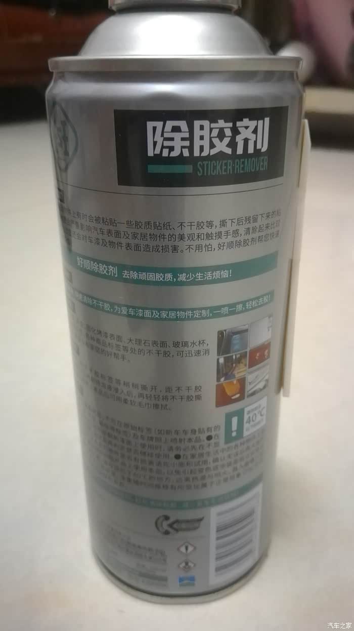 除胶的时候,喷一点在有胶的地方,侵泡几秒钟就行了,就得清理,时间久了怕对油漆有伤害,除胶剂带有一个小铲子、除胶用的,铲胶的。