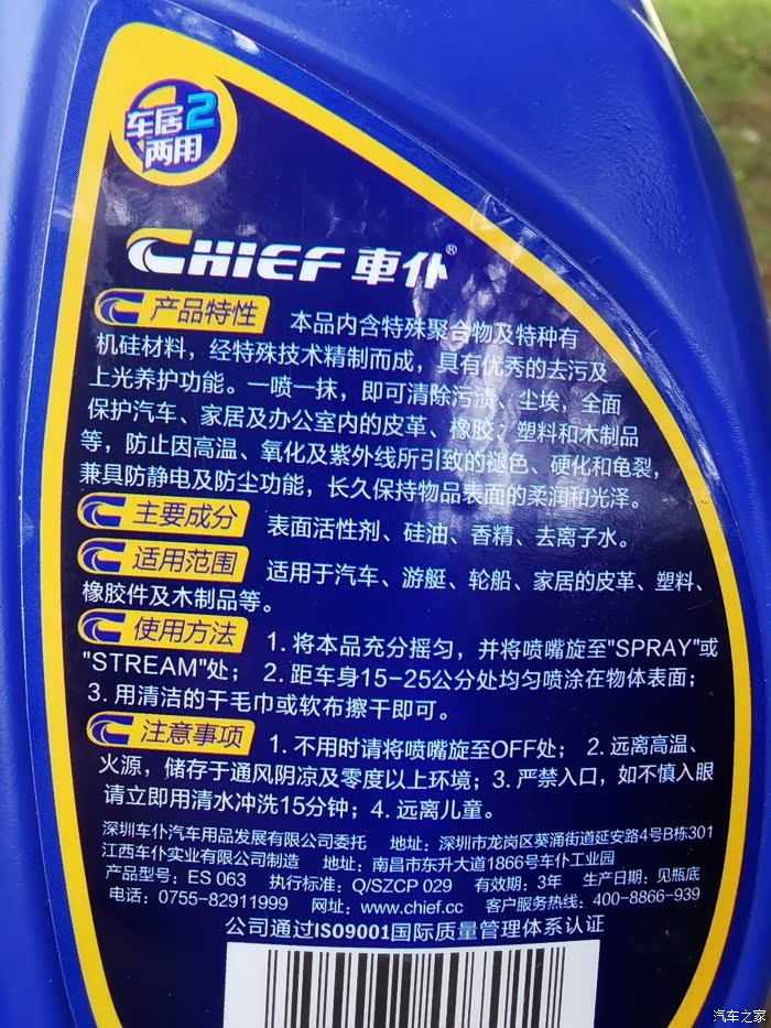 使用质量:这款车仆2合1真皮护理液是车居两用产品,使用的场景比较多,特点是清洁养护,一步到位。本产品成分使用了特殊的聚合物与特种有机硅材料,经特殊技术精制而成,具有优秀的去污及上光养护功能。使用方法简单,一喷一抹既可以清洁污渍及保护汽车、家居和办公室的皮革。喷头可以调节的,使用完成后关闭喷头。存放在通风阴凉处,远离儿童。