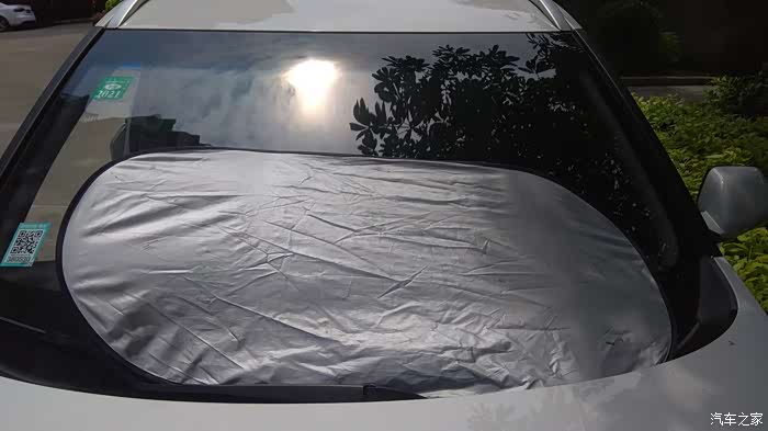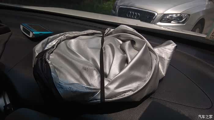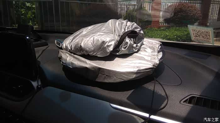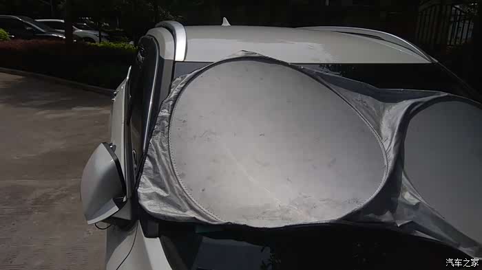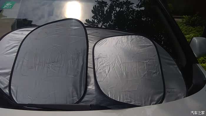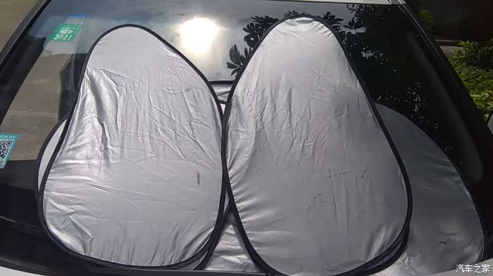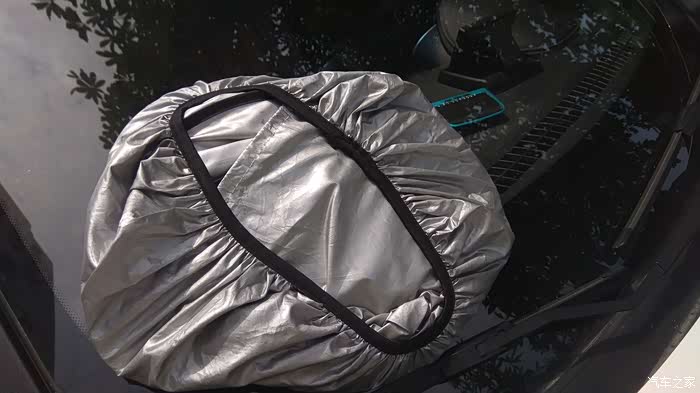 两个圆形面板,薄薄的两片连接,也减少了它的份量,刚好能遮盖住前挡玻璃。