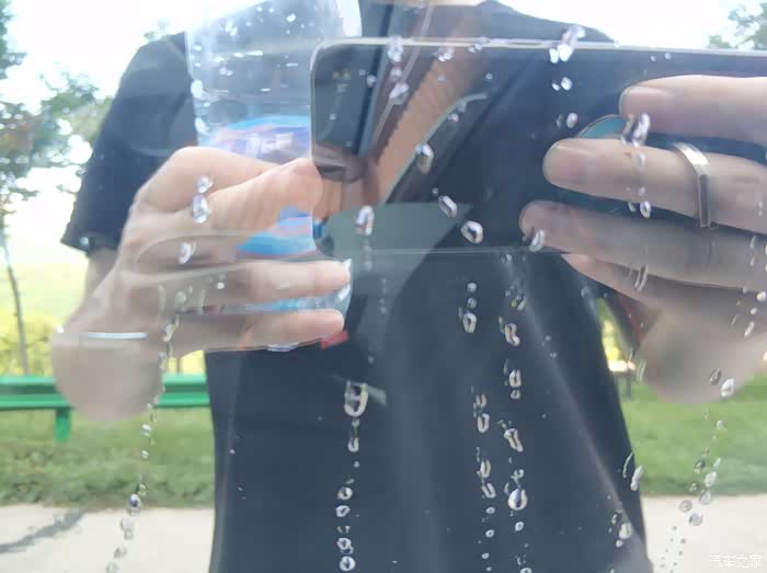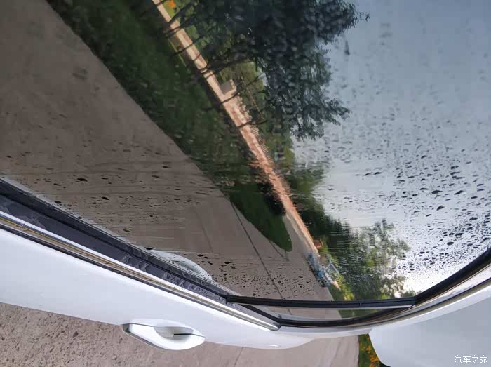 这车窗是没有涂雨敌的,所以有水就是这个样子